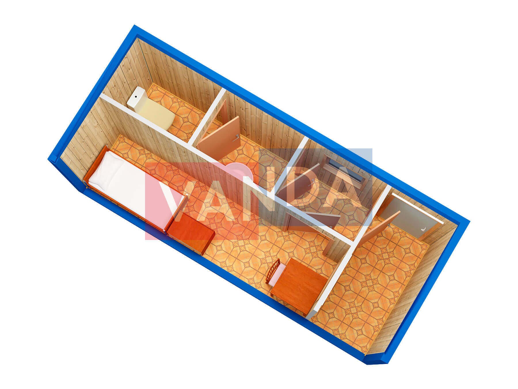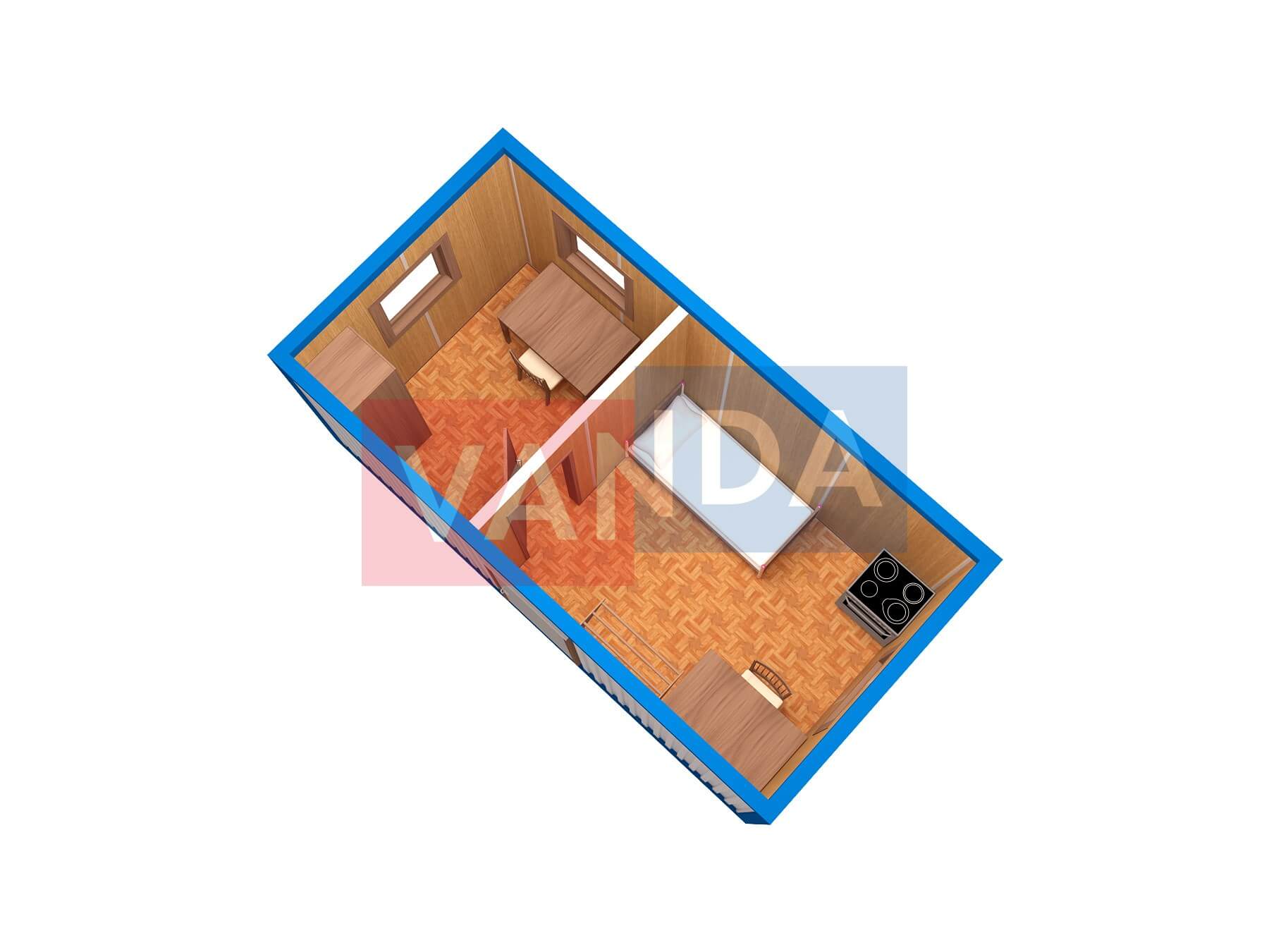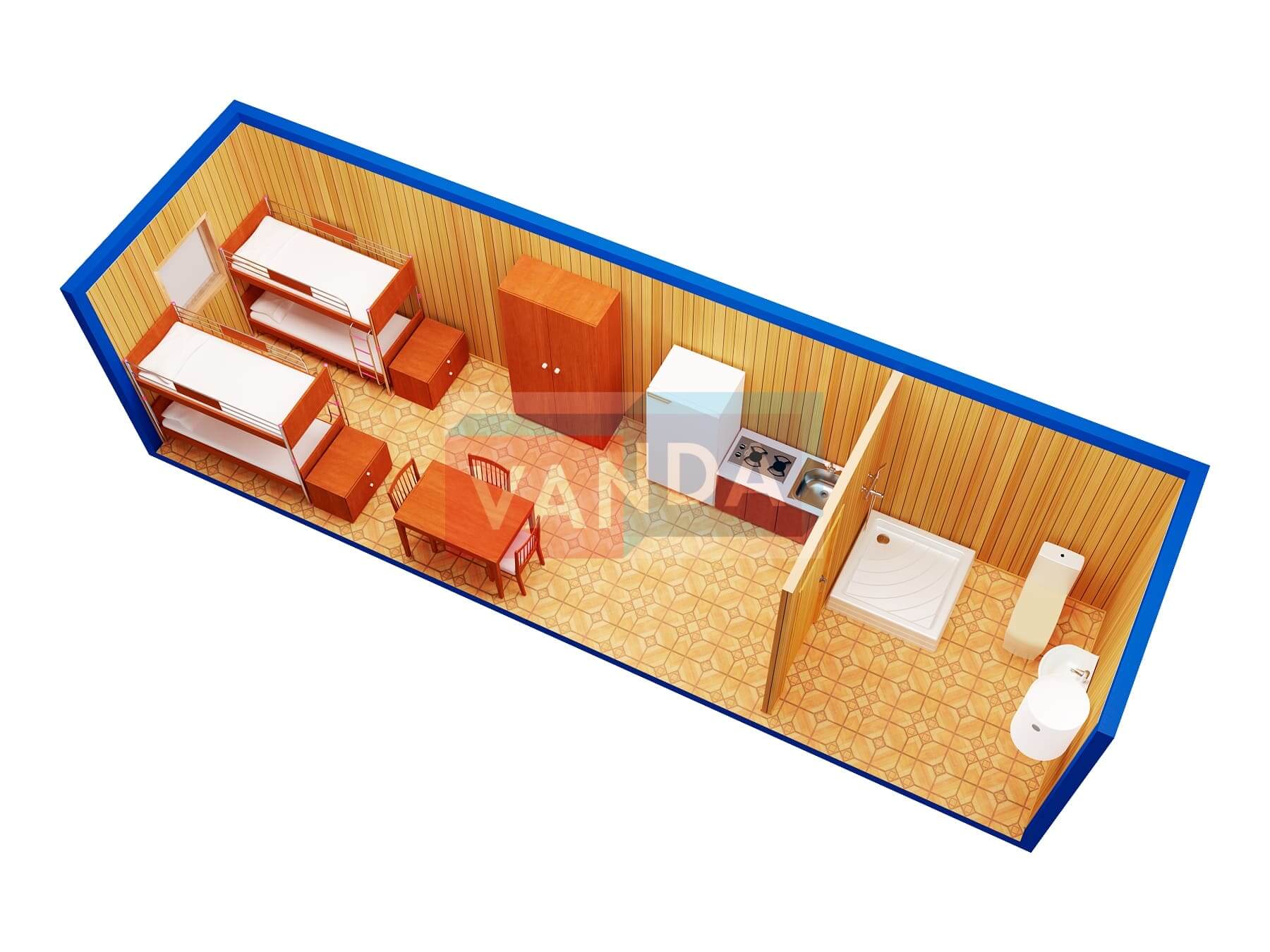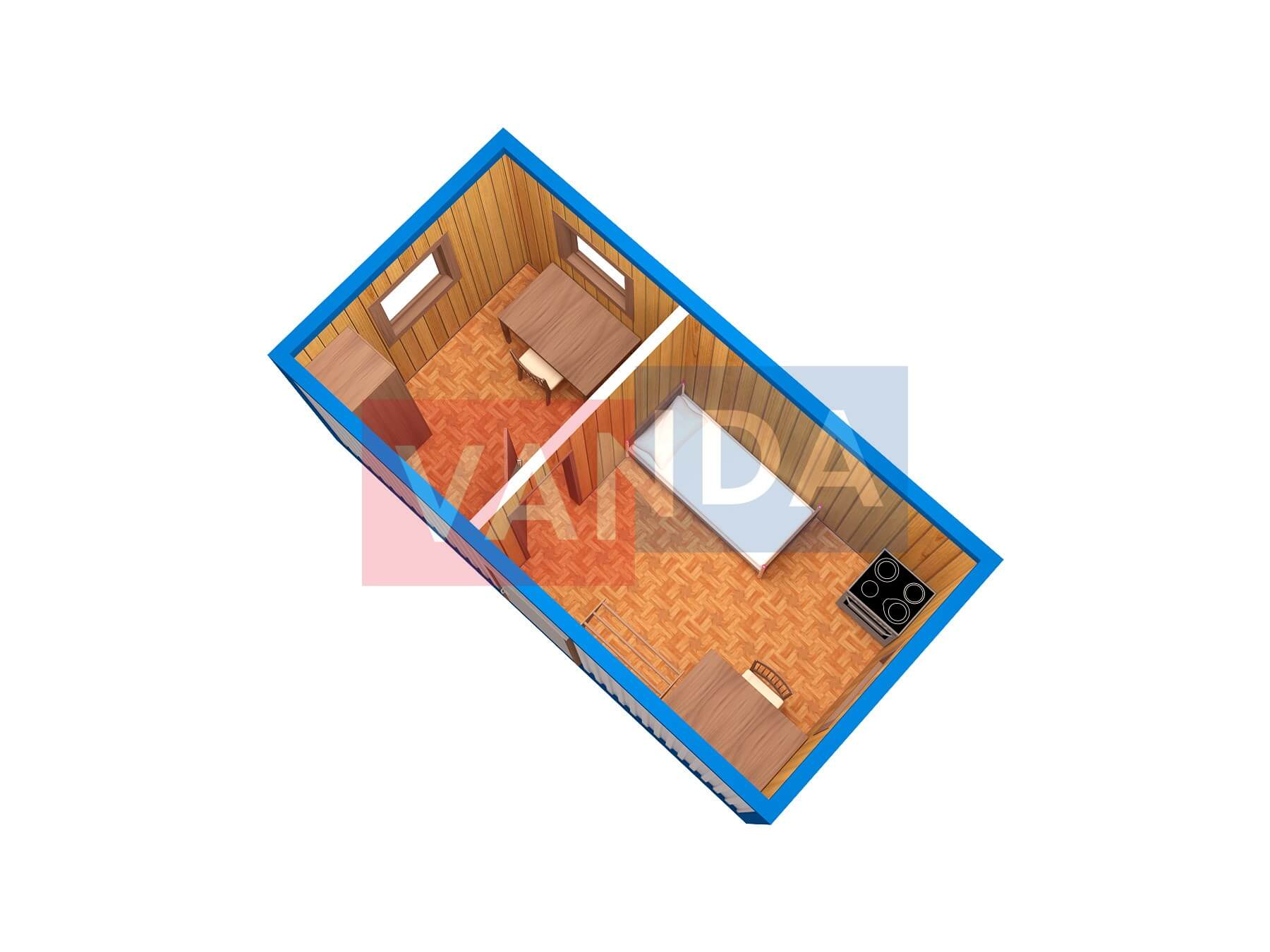 Строительная бытовка со сборкой на месте №4 (вариант 3) 5.8x2.2 12.76 Вагонка деревянная Имитация бруса 140 500 р. Уточняйте у менеджера
