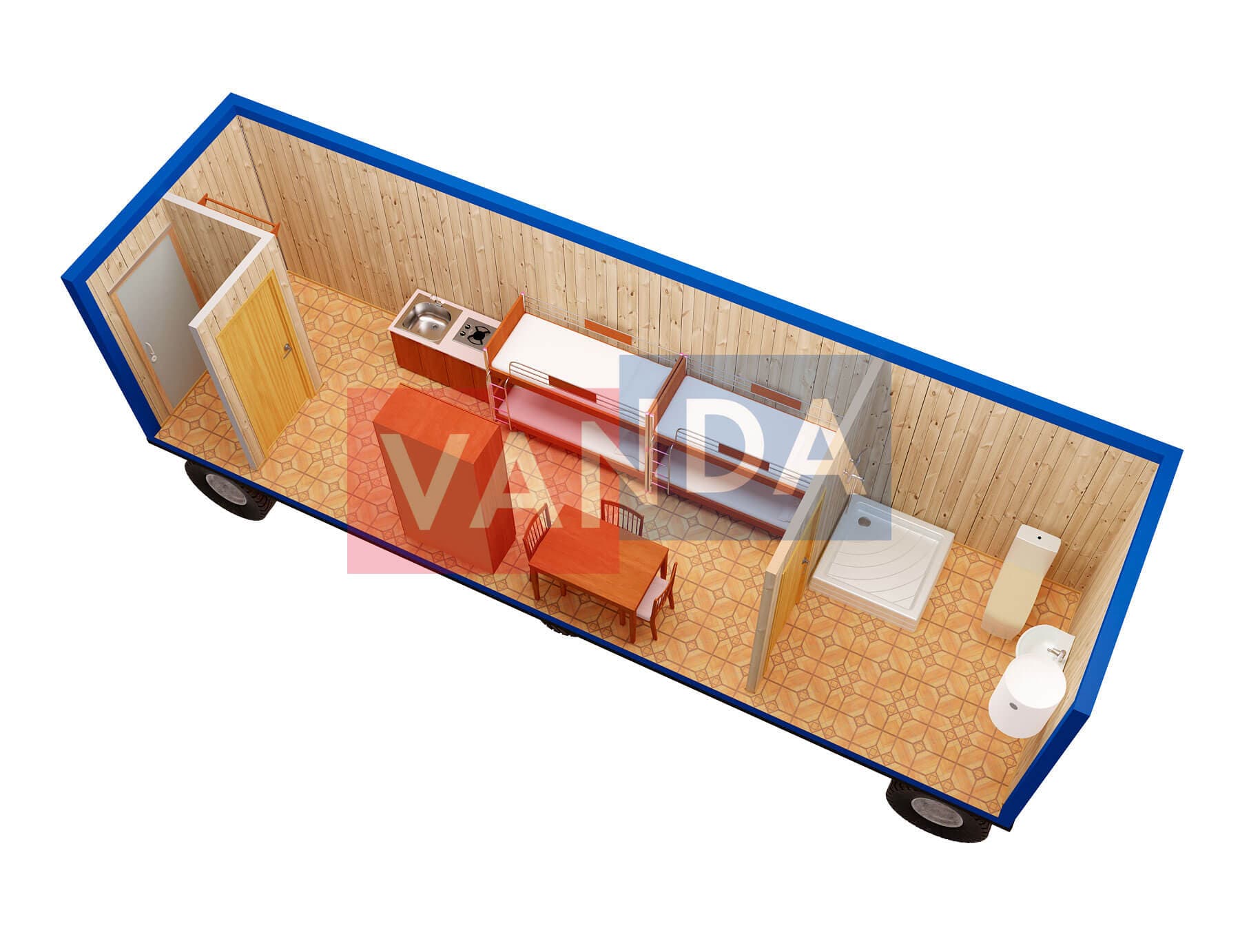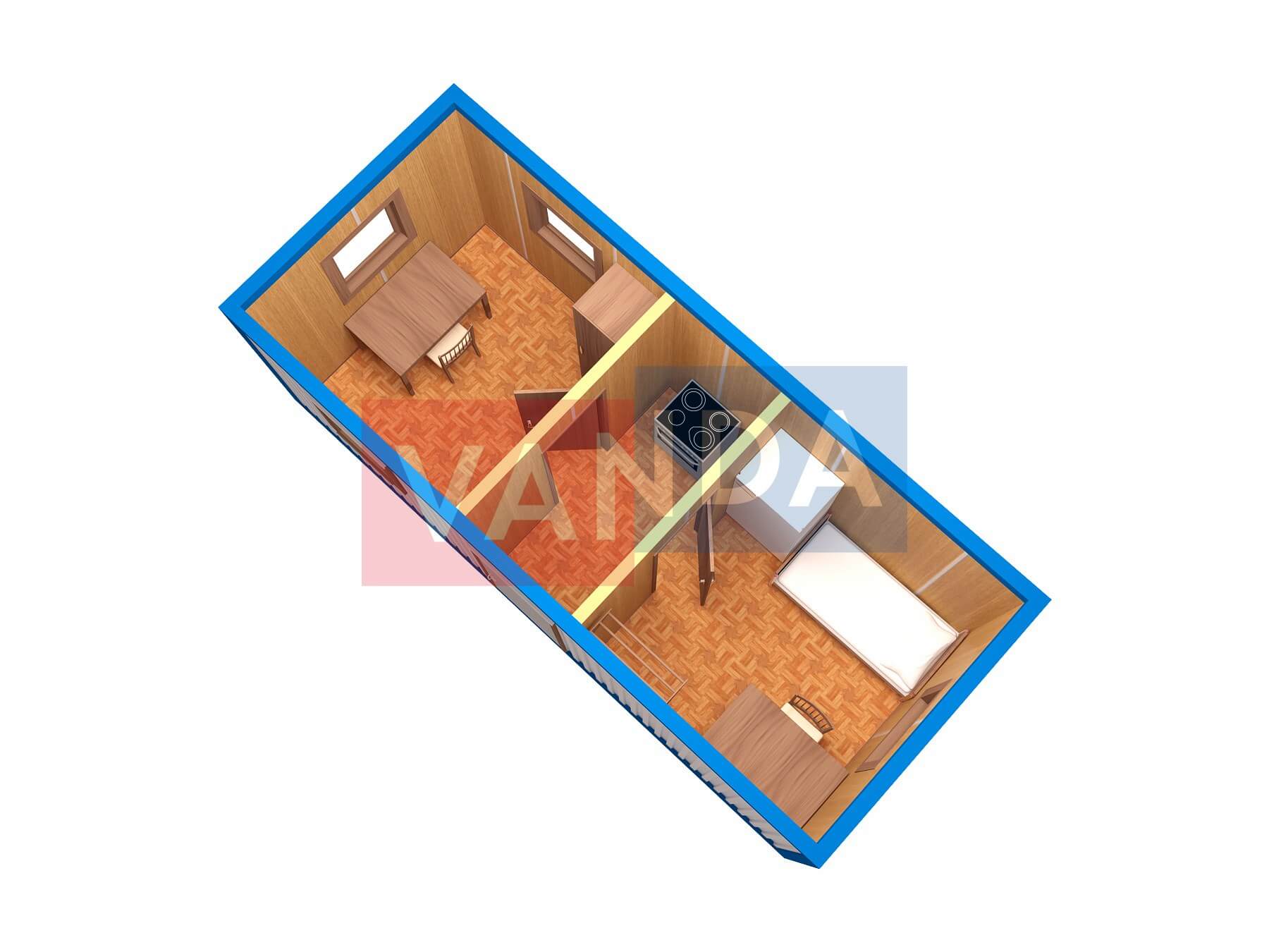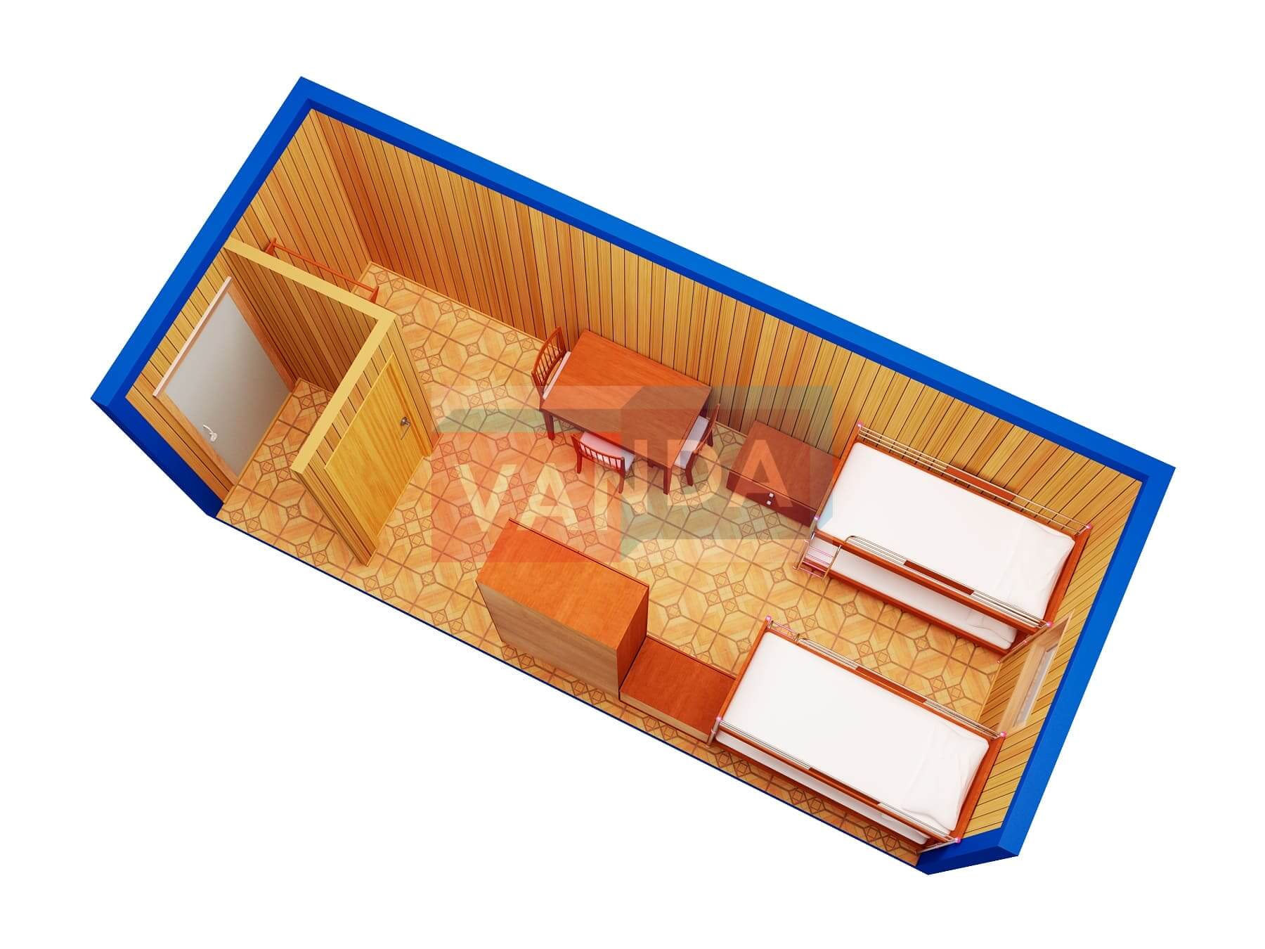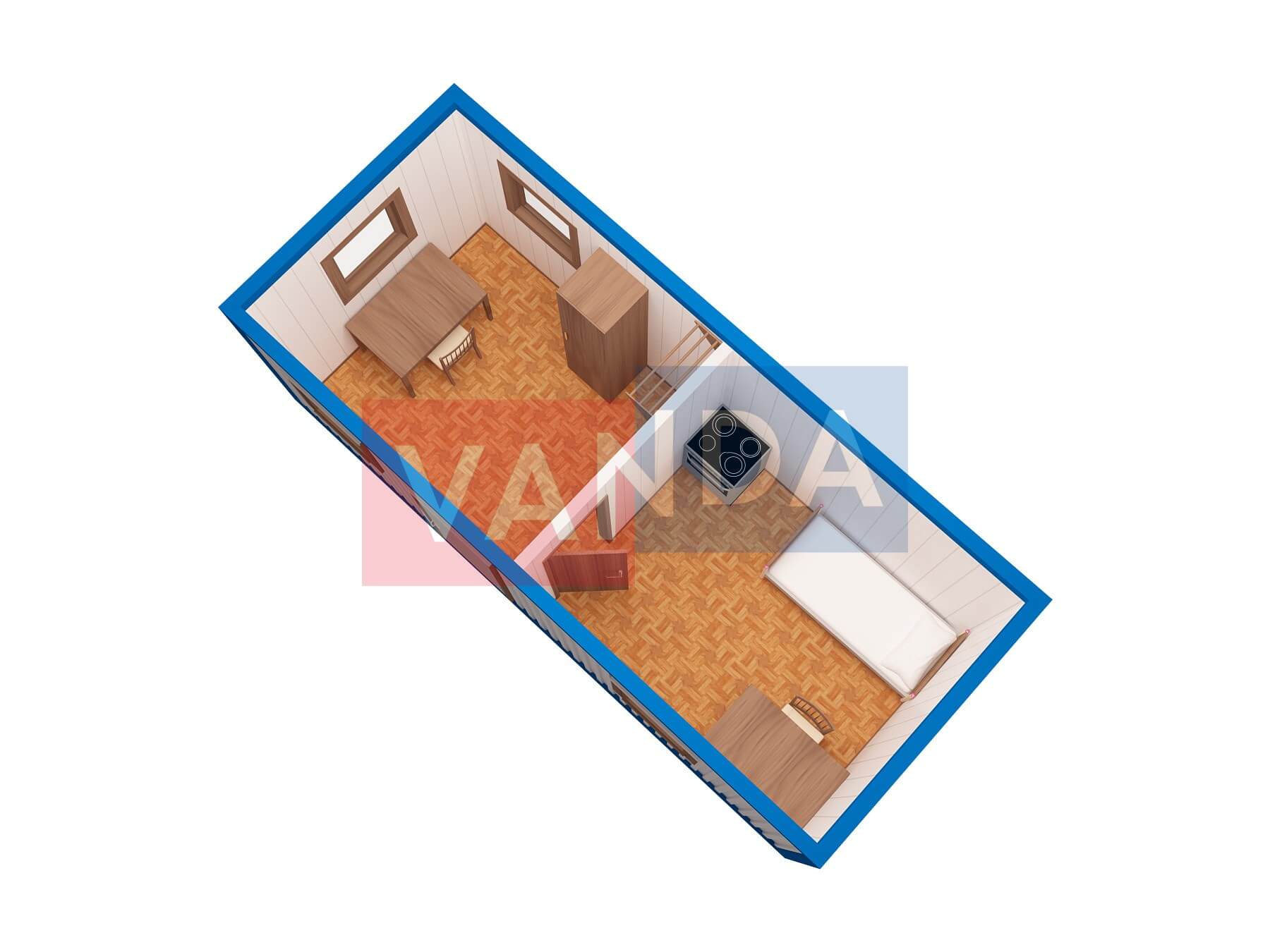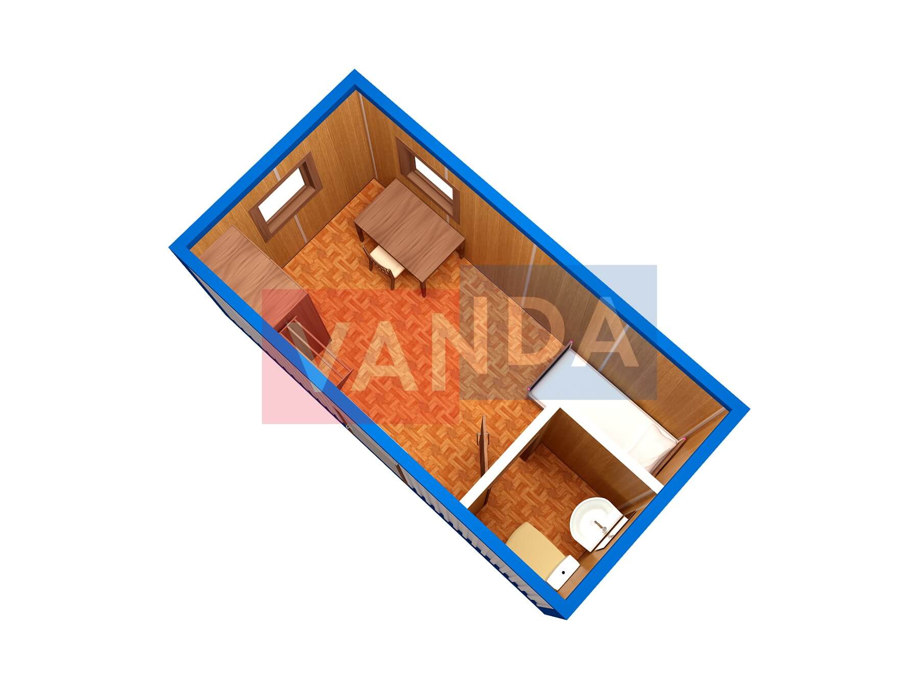 Строительная бытовка со сборкой на месте №4 (вариант 3) 5.8x2.2 12.76 Вагонка деревянная Имитация бруса 140 500 р. Уточняйте у менеджера