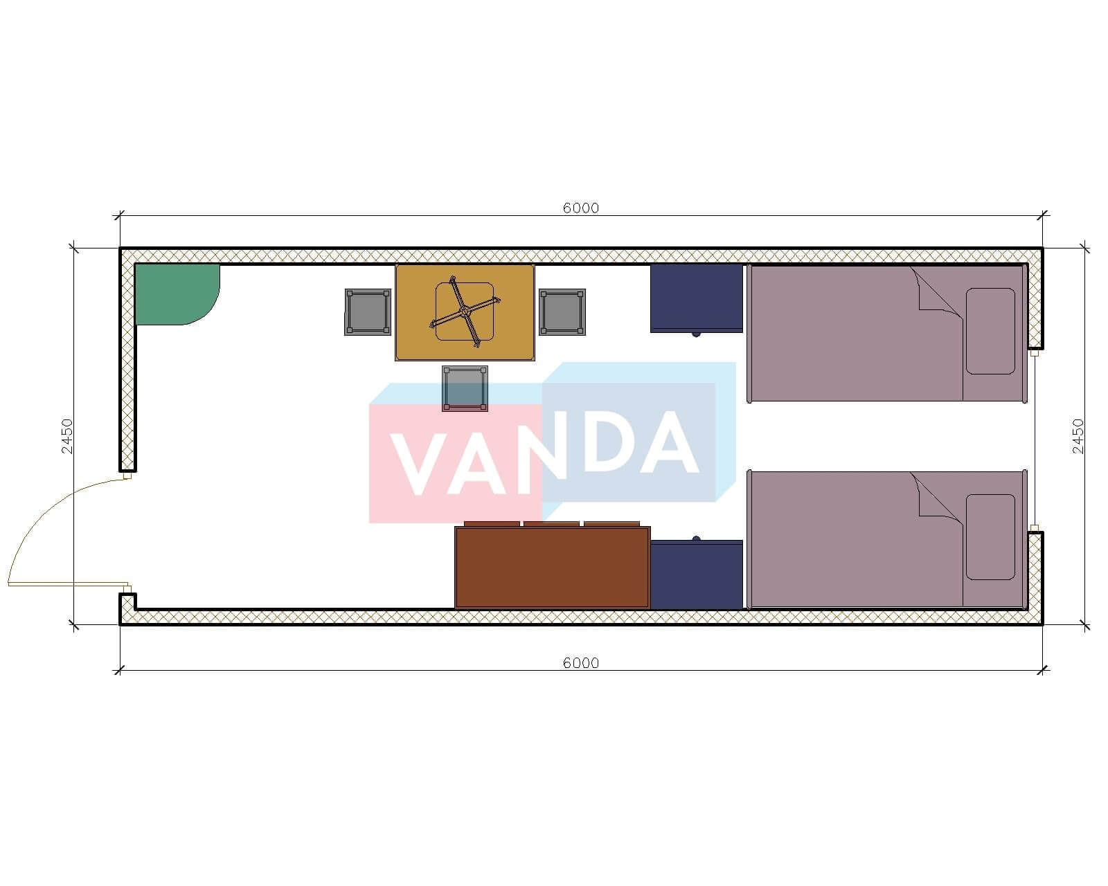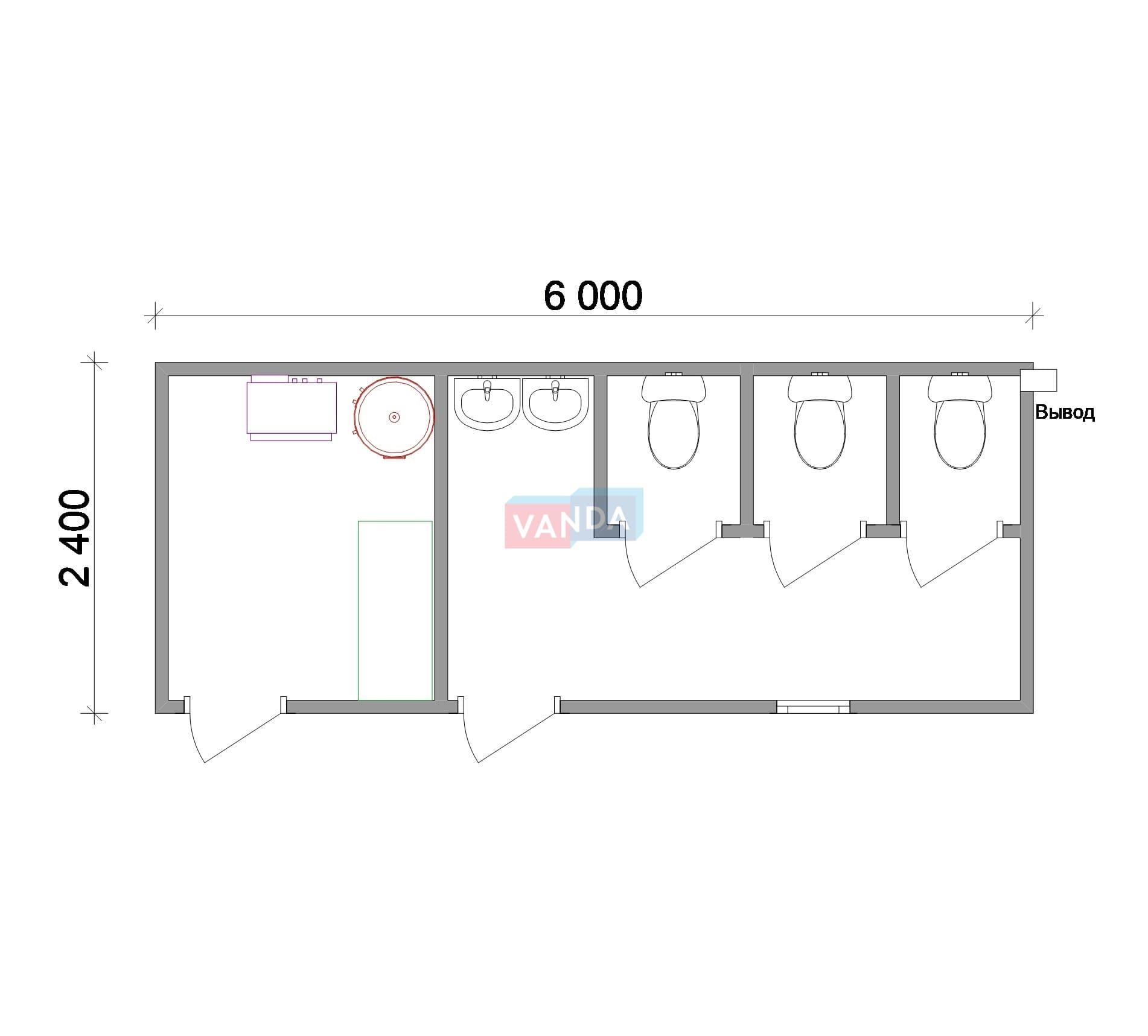 Бытовка металлическая двухкомнатная 6х2,45 5.85x2.4 14.04 Оргалит-ДВП оцинкованный профлист 110 000 р. Уточняйте у менеджера