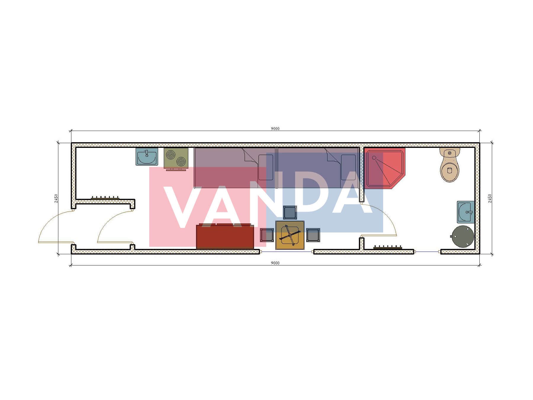 Металлическая бытовка с кухней в тамбуре 5,85 x 2,4 - Вагонка деревянная 5.85x2.4 14.04 Вагонка деревянная оцинкованный профлист 174 000 р. Уточняйте у менеджера