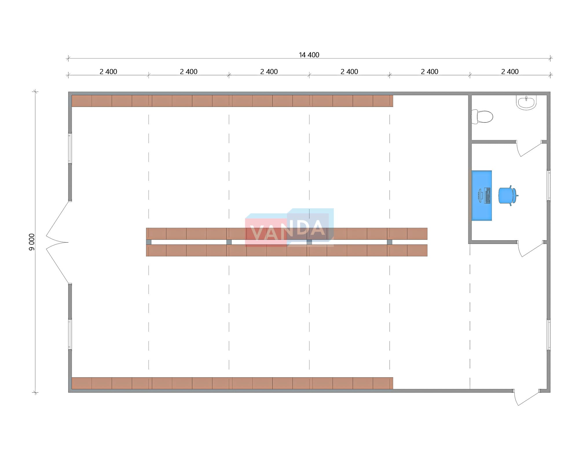 Бытовка под склад № 3 (Вариант 1) 5.85x2.4 14.04 Оцинкованный профлист оцинкованный профлист 295 500 р. Уточняйте у менеджера