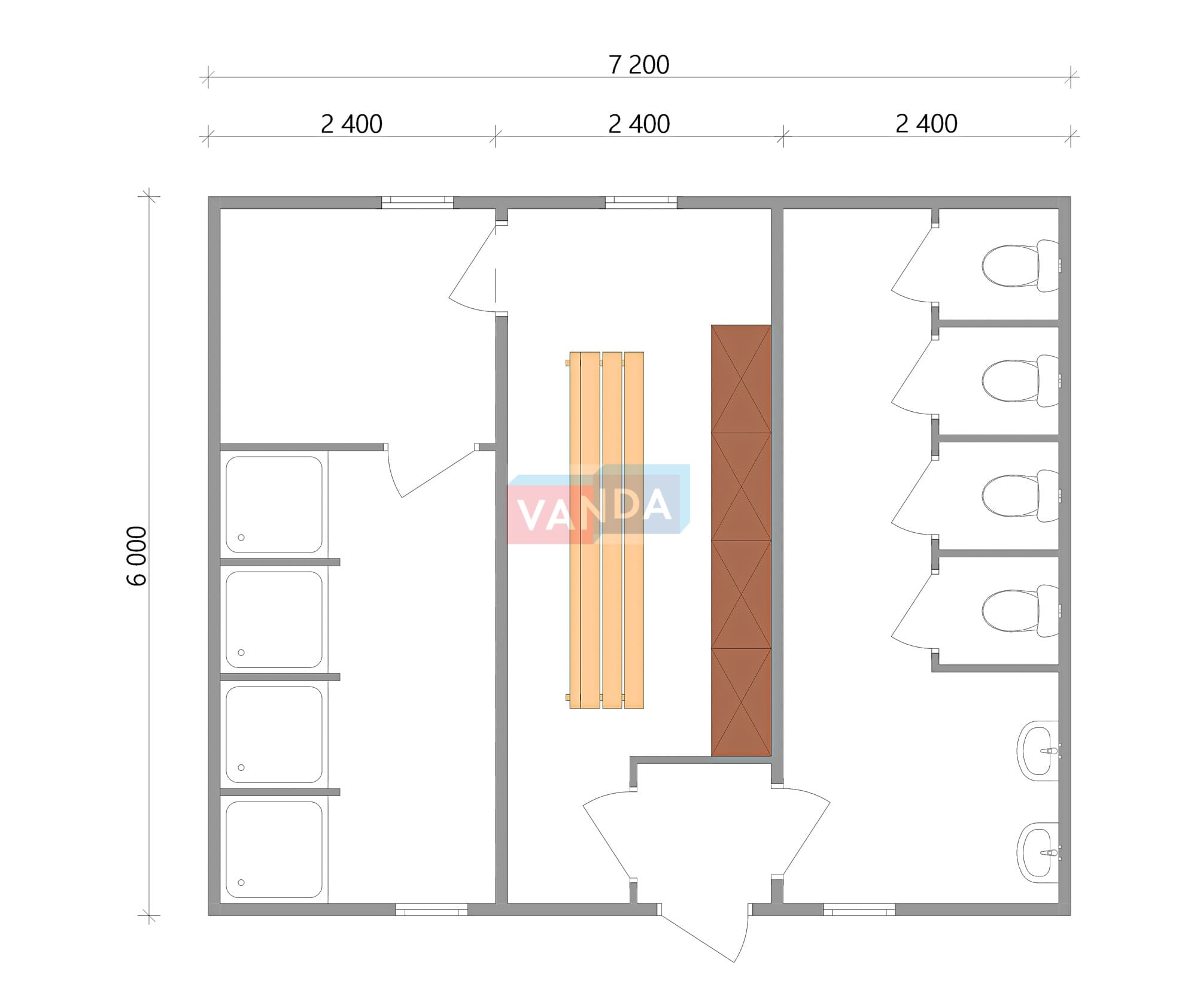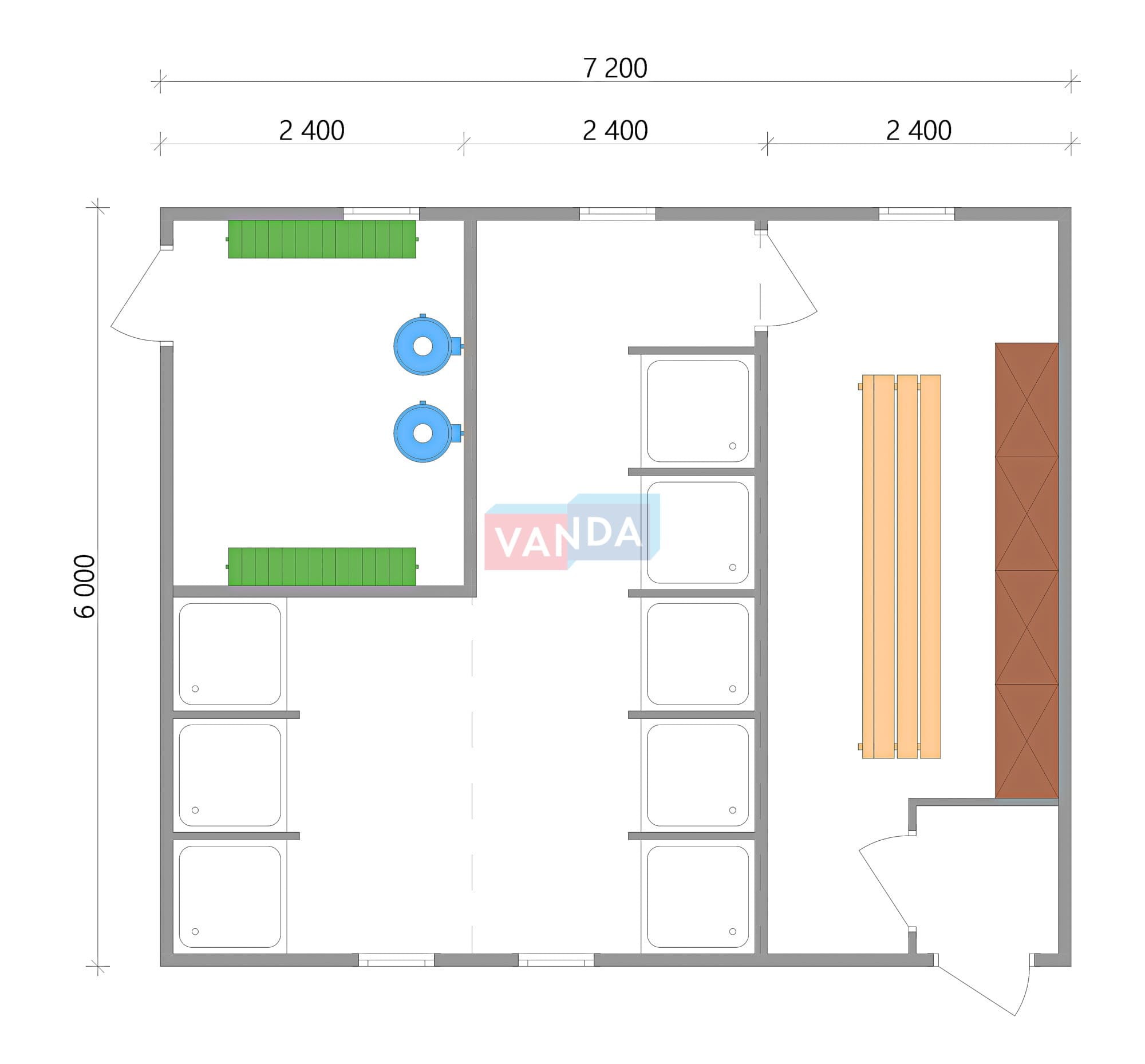 Модульная бытовка с плоской крышей 7.2x6.0 7.2x6.0 43.2 OSB 9 мм. Оцинкованный профлист 650 000 р. Уточняйте у менеджера